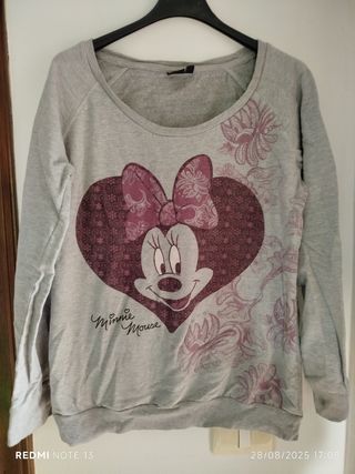 Felpa girocollo con stampa di Minnie Mouse. - Maniche lunghe raglan. - Stampa frontale con Minnie Mouse e cuore. - Dettagli floreali rosa.