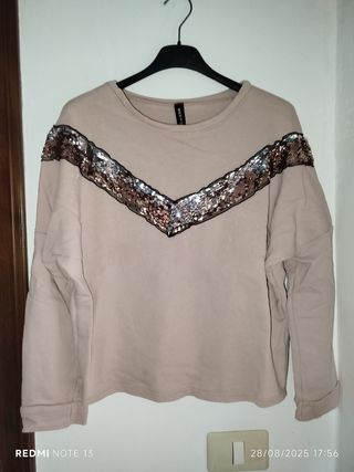 Felpa con un design a V decorato con paillettes. - Dettaglio a V con paillettes. - Maniche lunghe.