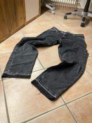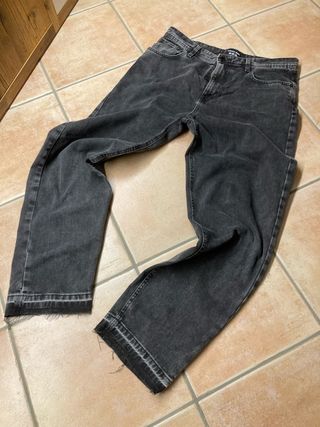 Jeans dal taglio baggy e leggermente svasato. - Vita alta. - Tasche. - Orlo sfrangiato.