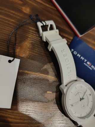 Orologio da polso Tommy Hilfiger con cinturino bianco in gomma. - Quadrante bianco. - Dettagli argento. - Articolo nuovo mai indossato