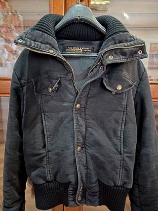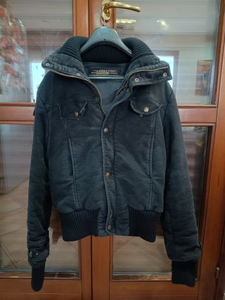 Con 4 tasche davanti, cerniera e bottoni e collo che si può tenere alzato o giù. Come da ultima foto, manca un bottone in alto e bisogna cambiare la cerniera.