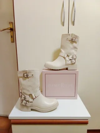 Stivaletti alla moda color panna, perfetti per completare il tuo look. - Dettagli con fibbie e anelli. - Tomaia traforata.