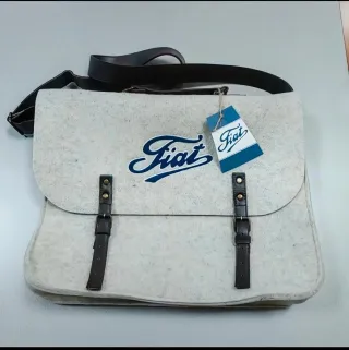 Borsa a tracolla vintage Fiat, perfetta per portare con te il tuo PC o documenti. - Realizzata in feltro resistente. - Dettagli in pelle marrone. - Logo Fiat applicato sul davanti. - Chiusura con fibbie. - Tracolla regolabile. Cartella Borsa Porta PC Vintage in Feltro Originale Fiat Il panno di feltro o meglio conosciuto come panno "Lenci"; Il panno Lenci nasce a Torino nel 1900 circa dalla ditta Lenci negli stessi anni in cui nasceva Fiat. La cartella è in 100% panno di lana come richiede la tradizione, colore grigio melange chiaro, 100% ecosostenibile, tutti gli accessori sono in vera pelle e ottone brunito. Ricamo Logo Fiat Vi