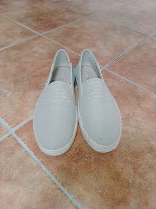 Vendo un paio di espadrillas. Sono in buone condizioni e presentano una delicata trama blu e bianca. - Sono comode e leggere. - Perfette per la primavera e l'estate. - Hanno una suola in corda.