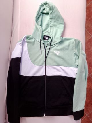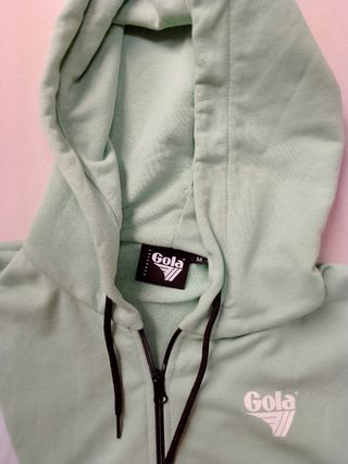 Vendo felpa con cappuccio Gola, taglia M. La felpa è in ottime condizioni ed è di colore verde e bianco. - Modello con zip. - Tessuto morbido e piacevole al tatto.