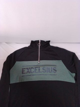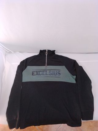 Vendo felpa da uomo con mezza zip, in ottime condizioni. - Modello a tinta unita con inserto a contrasto. - Stampa frontale "Excelsius". - Tessuto morbido e confortevole.