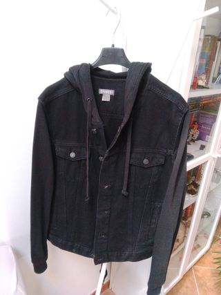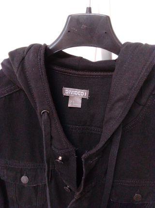 Vendo giacca jeans nera del brand Divided, taglia M - È una giacca in denim con cappuccio. - Il capo è in ottime condizioni.