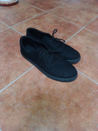 Vendo un paio di scarpe Daily Essentials, colore nero. Sono in buone condizioni. - Sono stringate. - Hanno una tomaia in tela.