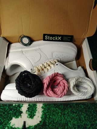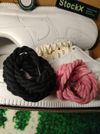 Vendo un paio di Nike Air Force 1 bianche customizzate con stile unico e dettagli curati, dotate di lacci grossi (rope laces) montati e 3 paia di lacci extra inclusi nel prezzo: 🧵 Bianco – 🖤 Nero – 🌸 Rosa Perfette per chi cerca un tocco personale e originale su una scarpa iconica. 🔹 NUOVE e mai indossate, perfette condizioni. 🔹 Spedizione sicura: utilizzo doppio imballaggio per proteggere al massimo le scarpe da qualsiasi danno durante il trasporto. Ideali per appassionati di sneaker, streetwear o semplicemente per chi vuole distinguersi. Non farteli scappare!