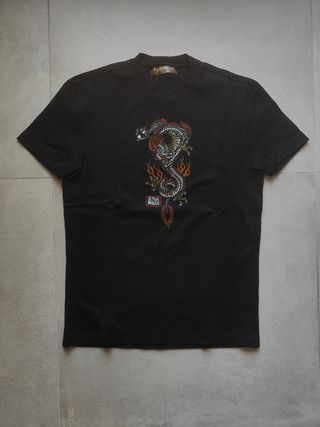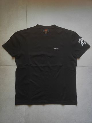 Maglietta nera a maniche corte con stampa Energie sul petto e drago su manica sinistra. Super elasticizzata. Torace 50 cm Spalle 47 cm Lunghezza da spalla davanti 62 cm *Articolo vintage primi anni 2000* Altra maglietta acquistabile in coppia a prezzo scontato, guarda altri annunci