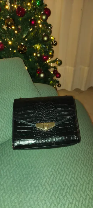 Elegante borsa in pelle con texture effetto coccodrillo. Chiusura a scatto metallica. - Materiale: Pelle - Colore: Nero - Dettagli: Texture effetto coccodrillo, chiusura a scatto metallica Usata, con qualche graffietto/scoloritura nella placchetta metallica ma ancora in ottime condizioni