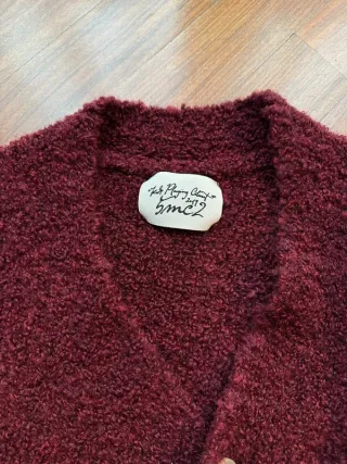 5mc2 Fluffy cardigan bouclé bordeaux con bottoni. Made in Italy Handmade Yellow Tag by "Lucia" Taglia: M Vestibilità: cropped fit Materiale: 5% alpaca; 10% lana; 10% viscosa; 7% poliamide; 1% elastan; 67% acrilico Prodotto nuovo senza cartellino, mai indossato. Non presenta alcuna imperfezione. Rimango a disposizione per qualsiasi altra informazione.