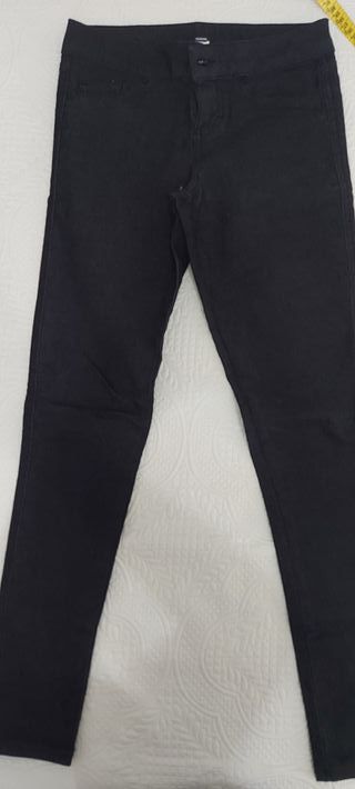 Pantaloni neri eleganti con una pratica zip laterale.Jeans nero cotone leggero senza tasche davanti e cerniera laterale Vita 30 cm...lunghezza 93 cm Taglia s italiana ma vestono poco controllare le misure - Design a vita alta. - Tessuto morbido ed elasticizzato.