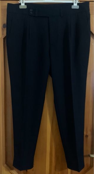 Pantaloni eleganti da uomo in colore nero. - Chiusura con bottone e zip. - Tasche laterali. - Pinces frontali. - Passanti per cintura.