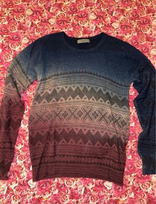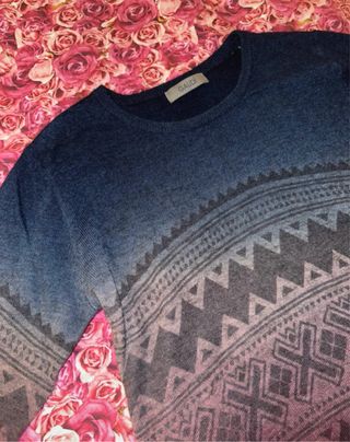 Maglioncino con un design unico e colorato. - Fantasia geometrica all-over. - Effetto sfumato blu e rosa.