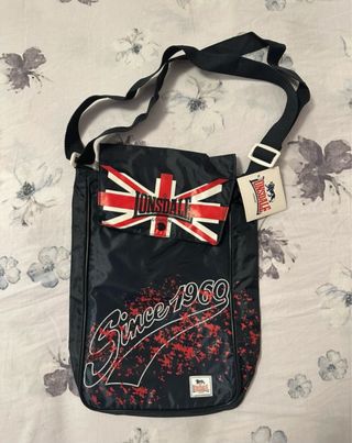 Borsello Lonsdale con design a bandoliera. - Fantasia Union Jack sulla patta. - Scritta Since 1960 sul davanti. - Logo Lonsdale presente.