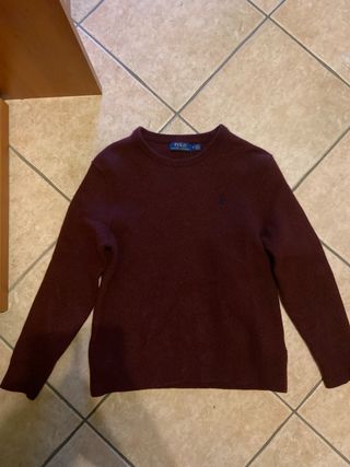 Maglione girocollo in lana merino di colore rosso. - Logo Pony ricamato sul petto. - Vestibilità BAMBINO 6-7-8 anni