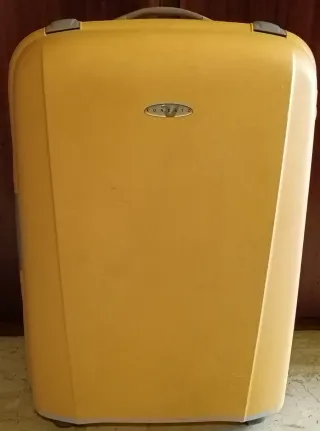 Valigia rigida Roncato di colore giallo.alt. 80 larg. 57 prof. 33 chiusura a combinazione +3 laterali con chiave speciale come nuova usata 2 volte - Materiale resistente. - Design moderno. - Logo Roncato sul davanti.