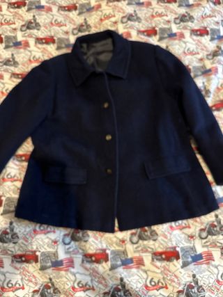 Giacca da donna di colore blu. - Tessuto in lana. - Tasca applicata sul davanti. - Chiusura con bottoni.