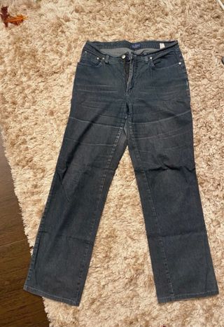 Jeans da donna in denim. - Vestibilità dritta. - Tasche anteriori e posteriori. - Chiusura con zip e bottone.