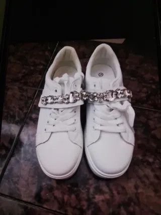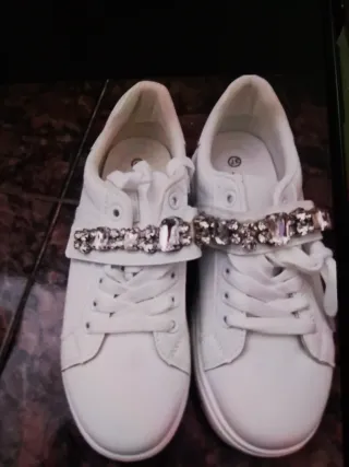 Eleganti scarpe da ginnastica da donna, perfette per aggiungere un tocco di luce al tuo outfit. - Decorazione con strass scintillanti sulla tomaia. - Design classico con lacci. - Materiale esterno in tessuto.