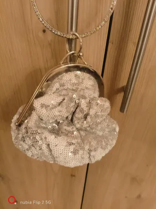 Elegante pochette da donna, perfetta per completare un look da sera. La sua finitura scintillante aggiunge un tocco di glamour. - Dettagli in paillettes. - Chiusura a scatto. - Fodera interna.