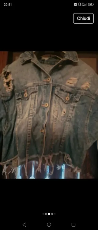 Giubbino di jeans da donna con un design moderno e un po' vissuto. - Taglio corto. - Dettagli strappati sulle maniche e sul fondo. - Effetto sbiadito.