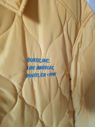 Elegante giubbino trapuntato Guess. - Colore giallo vivace. - Design trapuntato a rombi. - Chiusura con bottoni. - Tasche frontali. - Coulisse sul fondo. Taglia M, nuovo con cartellino, vendo a causa dei colori vivaci.