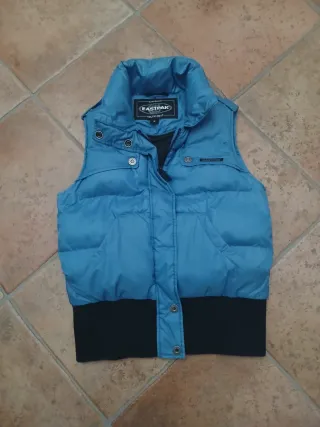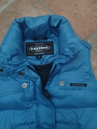 Gilet imbottito Eastpak in un vivace colore blu, con una comoda banda elastica nera sul fondo. - Collo alto per maggiore protezione. - Chiusura frontale con bottoni a pressione. - Tasche laterali con patta e bottone.