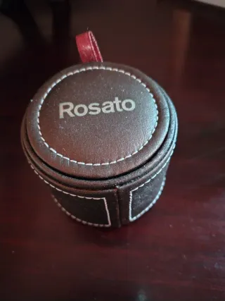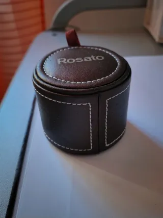 Elegante scatola per gioielli del marchio Rosato. - Materiale: similpelle - Colore: marrone - Dettagli con cuciture bianche - Piccolo laccetto rosso per apertura
