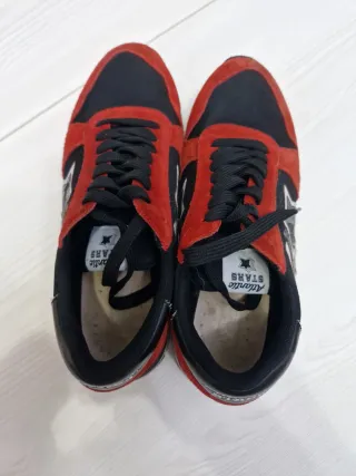 Scarpe sportive Atlantic Stars con un design accattivante. - Tomaia in tessuto nero e inserti in camoscio rosso. - Dettagli con logo laterale. - Lacci neri.