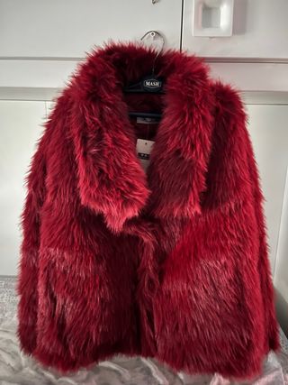 Elegante pelliccia sintetica color bordeaux, perfetta per aggiungere un tocco di stile. - Morbida al tatto. - Design con ampio collo a revers. - Chiusura frontale. veste molto comoda quindi adatta anche a chi porta un XL