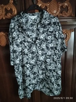 Camicetta da donna con una vivace fantasia floreale. - Maniche corte. - Scollo a V con bottoni. - Tessuto leggero e confortevole.