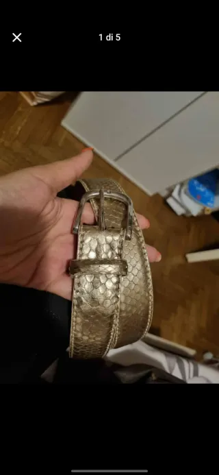 Elegante cintura con finitura effetto pelle di serpente. - Materiale: Pelle - Colore: Argento - Dettaglio fibbia in metallo argentato
