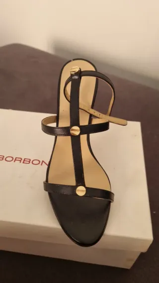 Eleganti sandali con tacco alto. - Design con cinturini sottili. - Dettagli con borchie dorate. - Logo BORBONESE stampato sulla soletta.