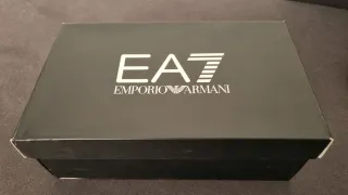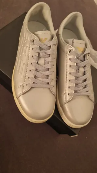 Eleganti scarpe Emporio Armani. - Design moderno e raffinato. - Dettagli logo dorati sulla linguetta. - Tomaia in materiale effetto metallizzato.