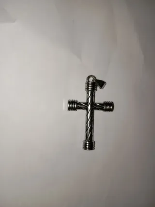 Collana con ciondolo a forma di croce, poco usata. Il design è caratterizzato da un motivo a spirale. - Materiale: metallo argentato. - Stile: ciondolo a croce.