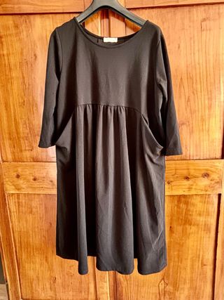 Abito da donna con maniche a 3/4 e pratiche tasche laterali. - Design con taglio impero. - Tessuto morbido e confortevole.