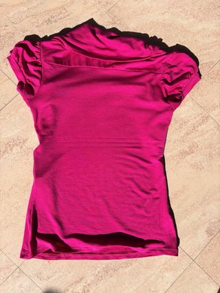 Maglietta da donna con un elegante collo a scialle. Un capo versatile e alla moda. - Maniche corte con elastico. - Tessuto morbido e confortevole.