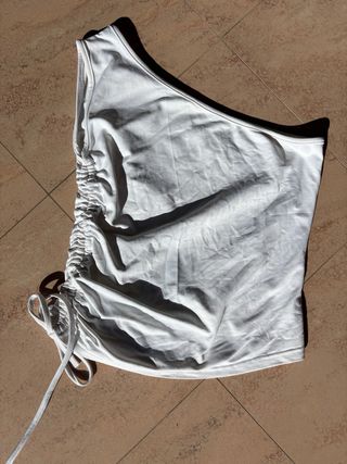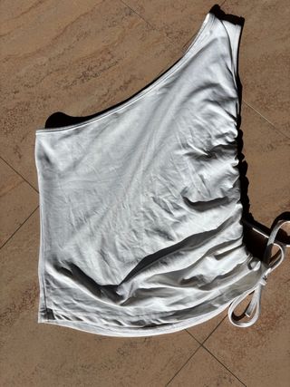 Top monospalla con un dettaglio di arricciatura sul fianco, regolabile tramite coulisse. - Design asimmetrico. - Tessuto morbido e confortevole. - Orlo curvo.