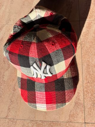 Cappellino con visiera New Era, modello con fantasia a quadri. - Fantasia a quadri rossa, nera e beige. - Logo NY ricamato sul davanti.