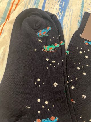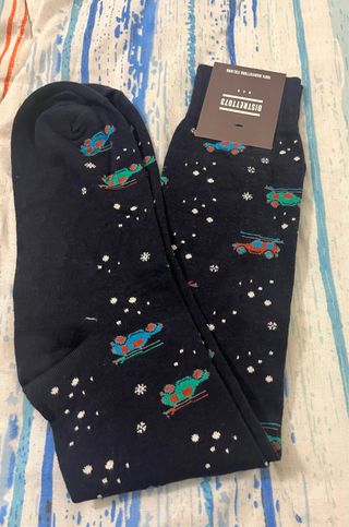 Calze da uomo con una divertente fantasia a tema auto e fiocchi di neve. - Fantasia con auto colorate e fiocchi di neve. - Design unico e originale.
