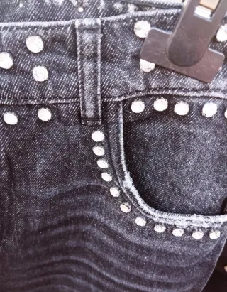 Jeans neri firmati Gaelle, con dettagli scintillanti. - Applicazioni di strass. - Tessuto denim.