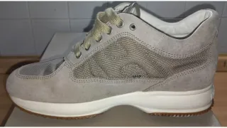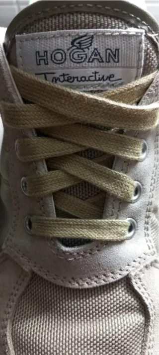 Scarpa Hogan da uomo in tonalità beige e grigio. - Tomaia in camoscio e tessuto. - Dettagli in rete. - Suola in gomma.