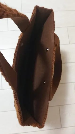 Borsa fatta a mano all'uncinetto, dal design unico e originale. - Materiale: filato di lana - Colore: marrone - Dettaglio: nappina decorativa - Chiusura con 2 bottoni magnetici