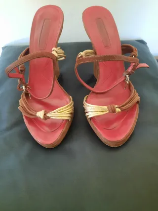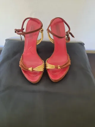 Eleganti sandali con tacco alto. - Design con cinturino alla caviglia. - Dettagli intrecciati sulla punta. - Tacco sottile e raffinato.