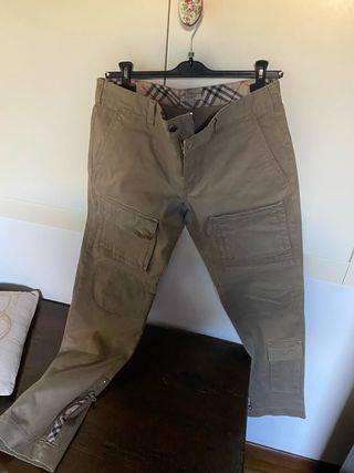 Pantaloni da uomo Burberry in un elegante colore beige. Presentano un design cargo con tasche pratiche. - Dettaglio con zip e fantasia iconica Burberry alla caviglia. - Patch in pelle con logo sul retro.