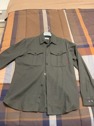 Camicia da uomo dal taglio classico, perfetta per un look casual o più formale. - Due tasche sul petto con patta. - Chiusura con bottoni. - Polsini con bottoni. - Piccolo dettaglio rosso ricamato sul lato destro.