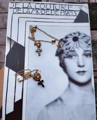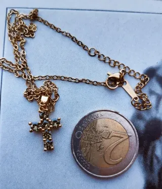 Deliziosa coppia di croci, una con pietre blu e l'altra con pietre verdi entrambe con catenina dorata. - Catenina sottile color oro.