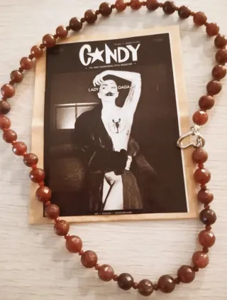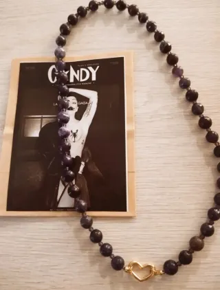 Coppia di collane con perle sfaccettate. Il prezzo è per una, sconto sulla coppia - Perle di colore viola e rosso. - Chiusura a moschettone in metallo argentato e dorato